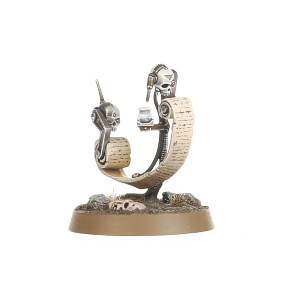 A Servo-scribe completes the squad, recording deeds of sacrifice and glory. Though not a combat powerhouse, this miniature adds character and represents the bureaucratic weight that follows every Imperial regiment into battle.